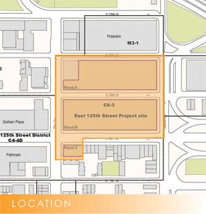 - Background on the East 125th Street Mixed-Use Development (NYC Economic Development Corporation, September 2008)